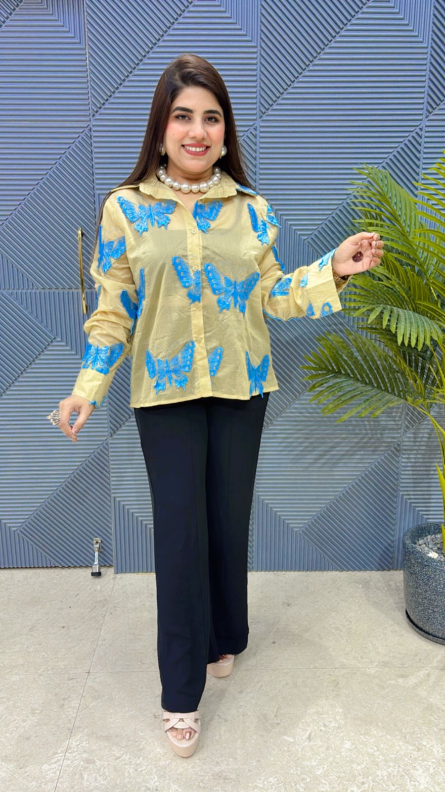 This PREMIUM SHIRT (TOP LENGTH: 24) is perfect for the season . THE SHIRT beautifully to create a versatile and stylish outfit. your summer wardrobe with this luxurious addition, adding a touch of sparkle and charm to any occasion.