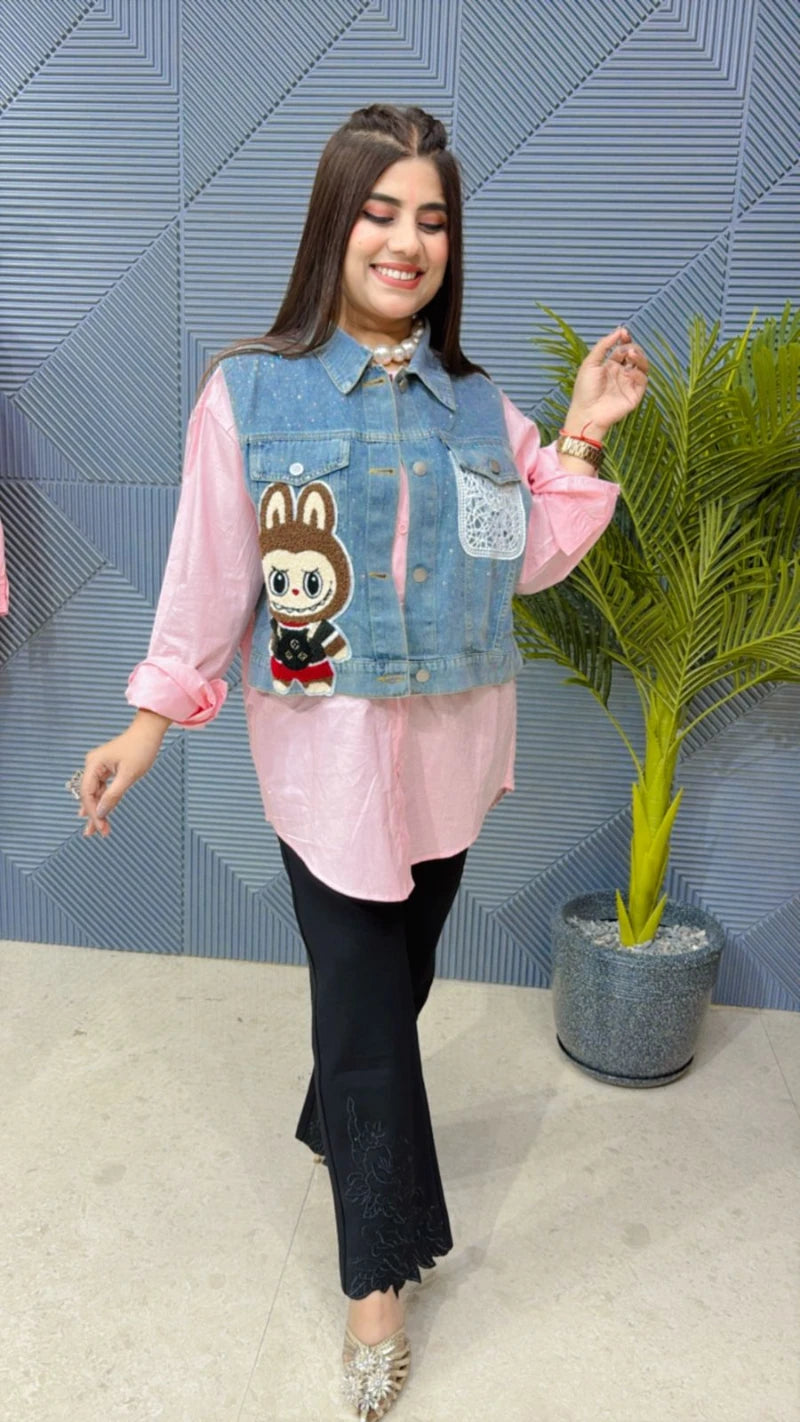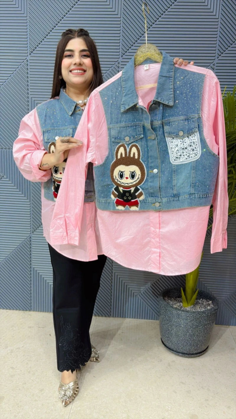 This SHIRT WITH ATTACHEBLE DENIM LABUBU JECKET is perfect for the season . The SHIRT WITH ATTACHEBLE DENIM LABUBU JECKET beautifully to create a versatile and stylish outfit. your summer wardrobe with this luxurious addition, adding a touch of sparkle and charm to any occasion .
