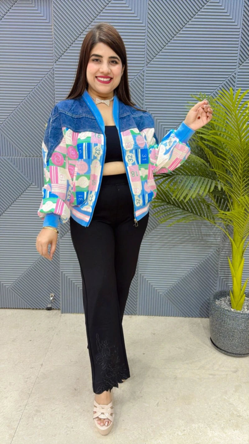 This BEAUTIFUL DENIM JECKET (LENGTH - 23) is perfect for the season . THE JECKET beautifully to create a versatile and stylish outfit. your summer wardrobe with this luxurious addition, adding a touch of sparkle and charm to any occasion.