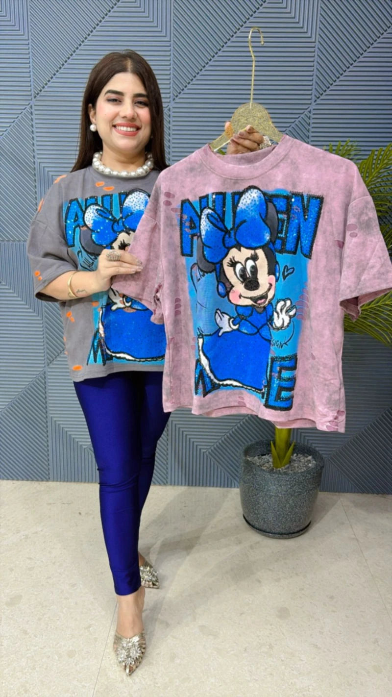 This CUTE MIKKEY T-SHIRT (LENTH: 23) is perfect for the season . The MIKKEY T-SHIRT beautifully to create a versatile and stylish outfit. your summer wardrobe with this luxurious addition, adding a touch of sparkle and charm to any occasion .