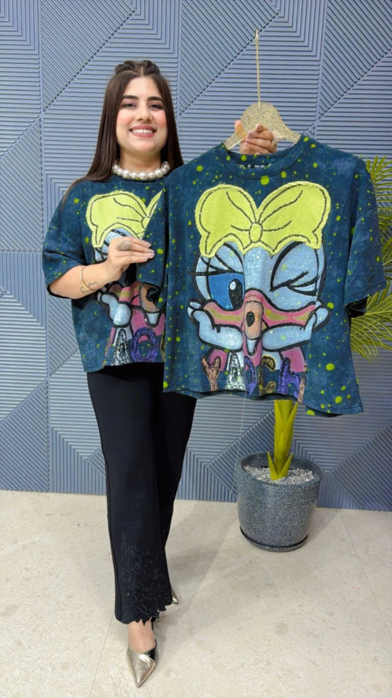 This T-SHIRT (LENTH:22-23) is perfect for the season . The T-SHIRT beautifully to create a versatile and stylish outfit. your summer wardrobe with this luxurious addition, adding a touch of sparkle and charm to any occasion .