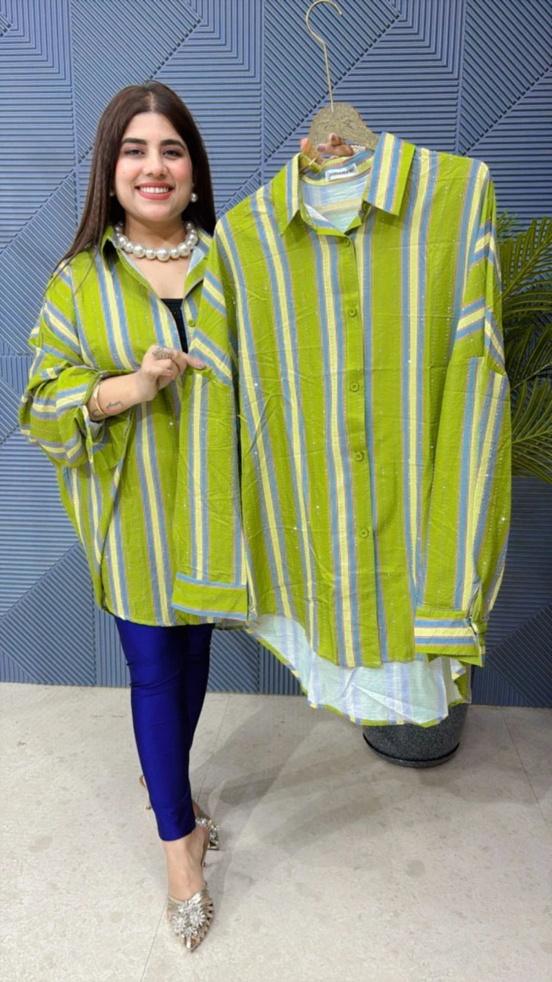 This SHIRT WITH SWAROVSKI WORK (LENTH: 37) is perfect for the season . The SHIRT beautifully to create a versatile and stylish outfit. your summer wardrobe with this luxurious addition, adding a touch of sparkle and charm to any occasion .