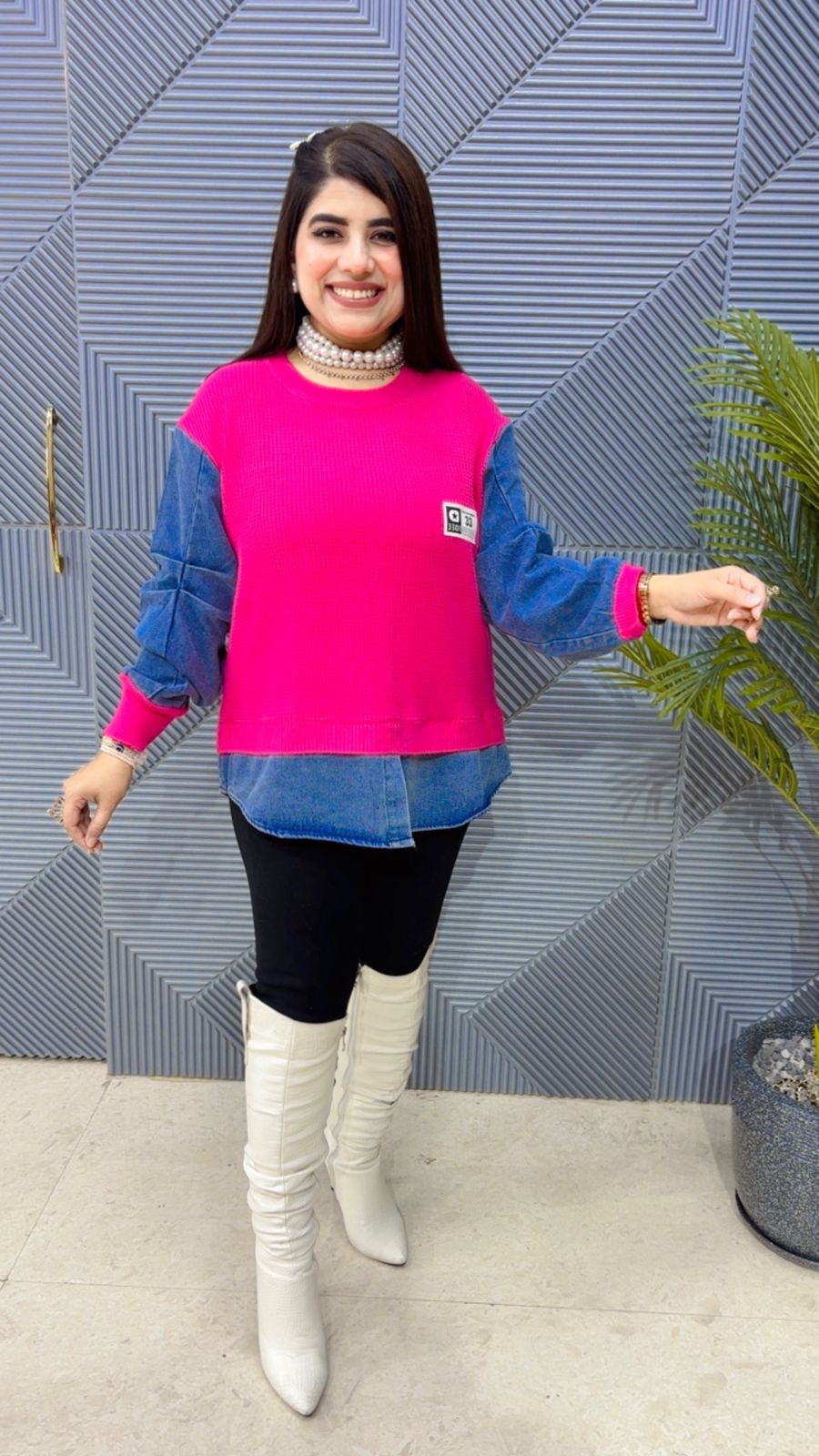 This PREMIUM KNITTED DENIM TOP (LENGTH: 26-27) Approx is perfect for the season . The TOP beautifully to create a versatile and stylish outfit. your WINTER wardrobe with this luxurious addition, adding a touch of sparkle and charm to any occasion. ( DELIVERY DAYS WITHIN: 10-12 DAYS)