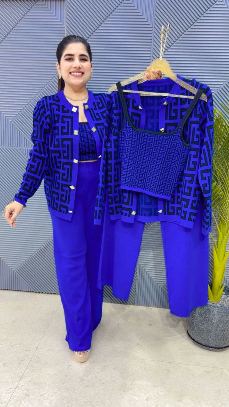 This BEAUTIFUL WINTERWEAR 3 PCS CORDSET WITH KNITTED FEBRIC (BUSTIER LENGTH:19, JECKET LENGTH: 25-26, BOTTOM LENGTH: 41-42) Approx is perfect for the season . The CORDSET beautifully to create a versatile and stylish outfit. your WINTER wardrobe with this luxurious addition, adding a touch of sparkle and charm to any occasion. ( DELIVERY DAYS WITHIN: 10-12 DAYS)