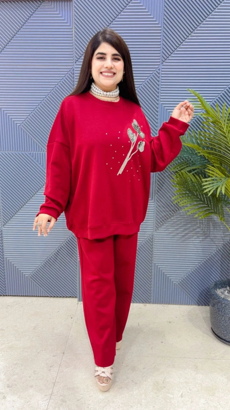 This BEAUTIFUL WINTERWEAR CORDSET WITH STUDED WORK (TOP LENGTH:29-30, BOTTOM LENGTH: 40-41) Approx is perfect for the season . The CORDSET beautifully to create a versatile and stylish outfit. your WINTER wardrobe with this luxurious addition, adding a touch of sparkle and charm to any occasion. ( DELIVERY DAYS WITHIN: 10-12 DAYS)