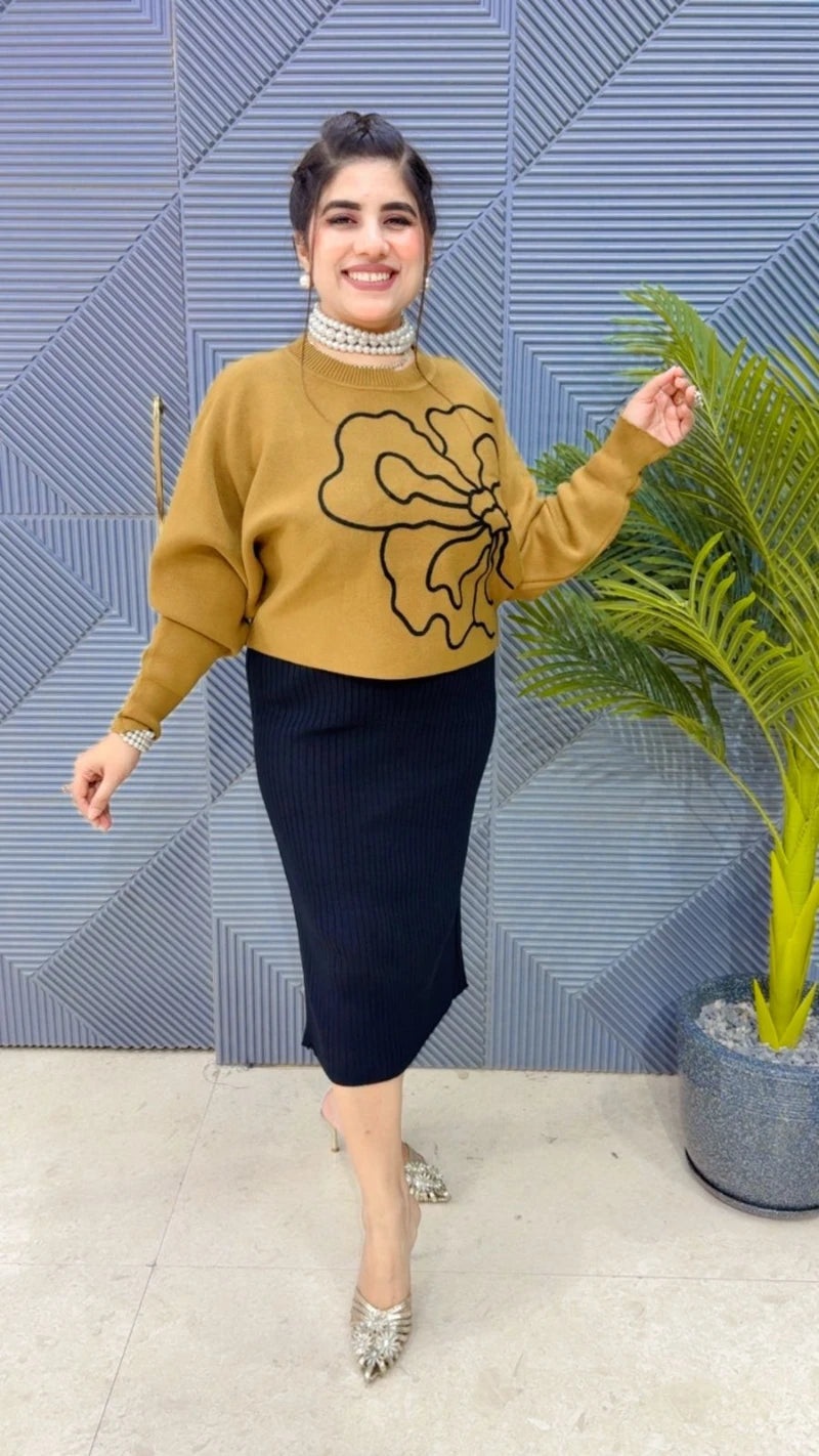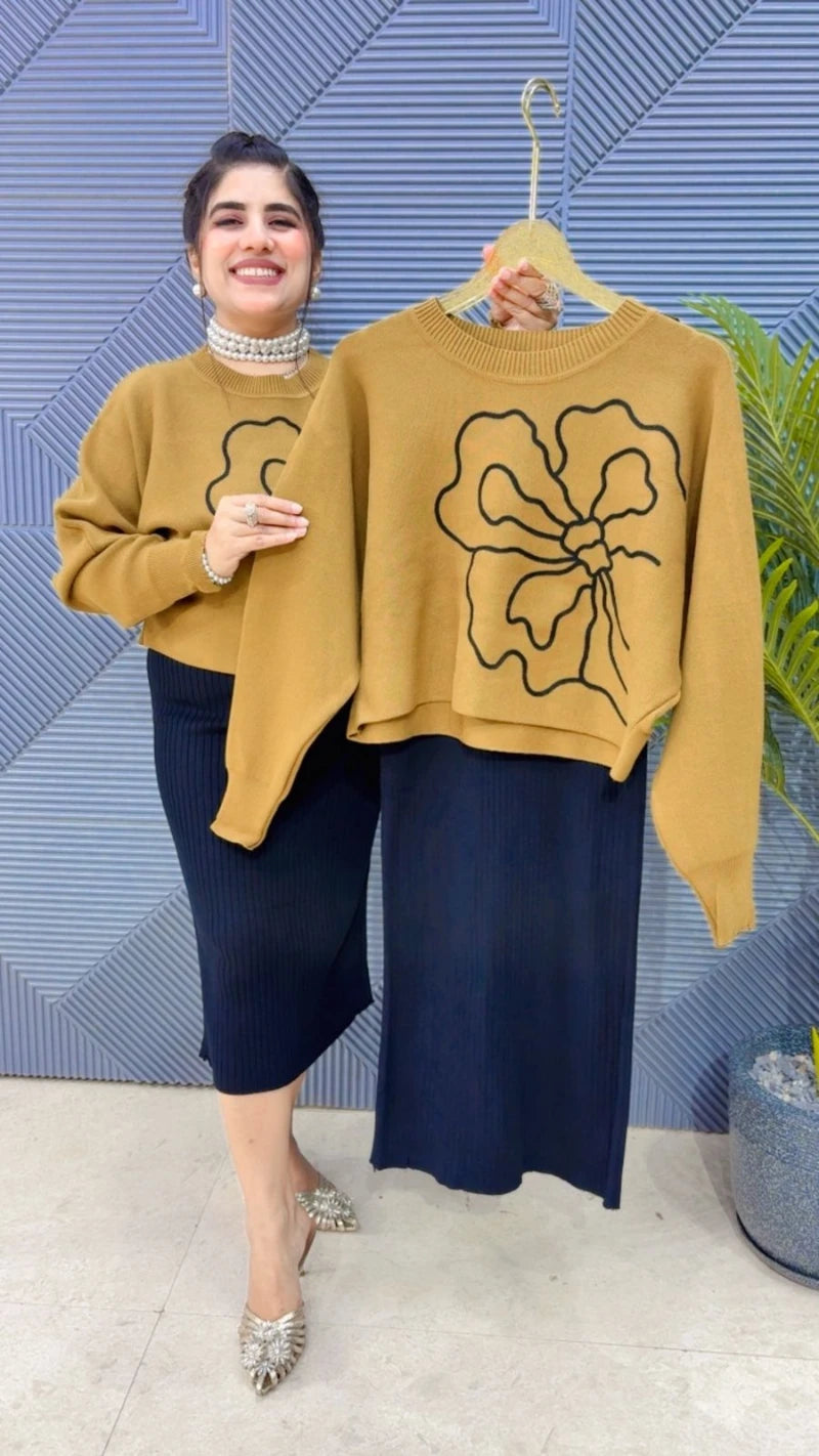 This BEAUTIFUL WINTERWEAR 2 PCS DRESS WITH KNITTED FEBRIC (TOP LENGTH:19-20, DRESS LENGTH: 40) Approx is perfect for the season . The DRESS beautifully to create a versatile and stylish outfit. your WINTER wardrobe with this luxurious addition, adding a touch of sparkle and charm to any occasion. ( DELIVERY DAYS WITHIN: 10-12 DAYS)