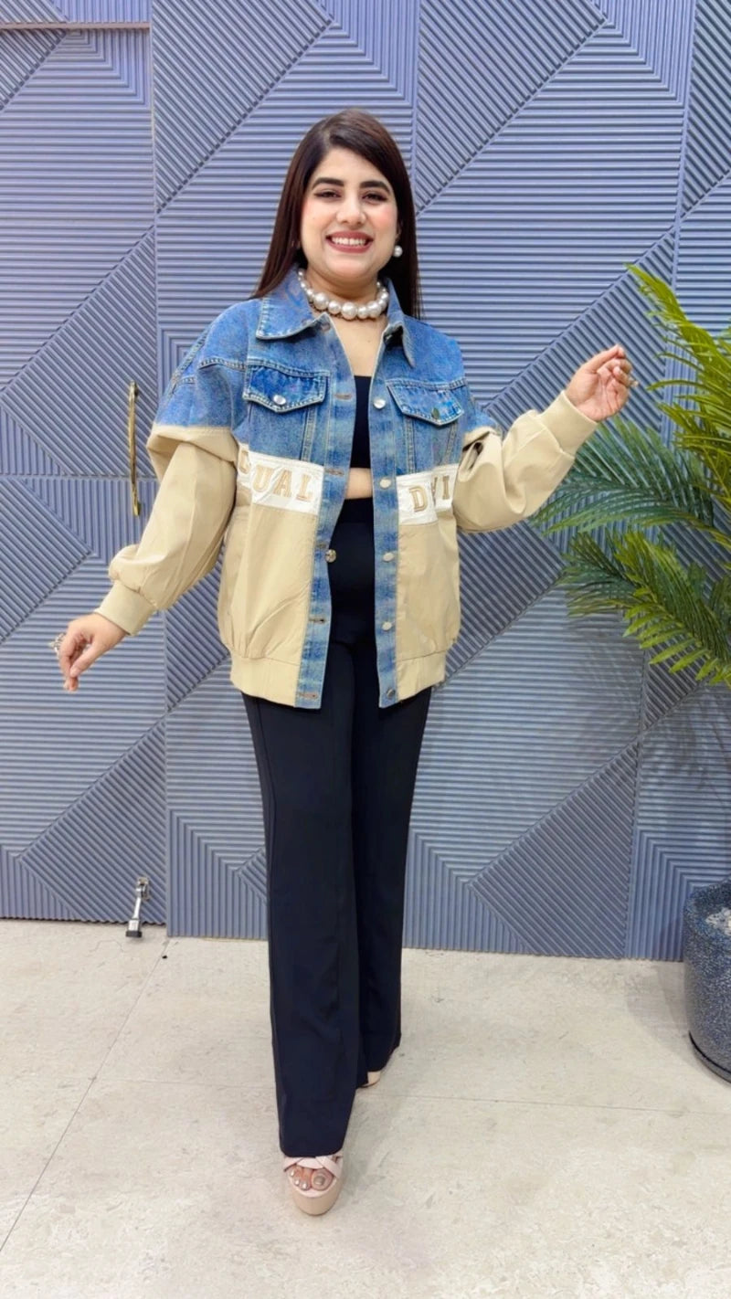 This BEAUTIFUL WINTERWEAR JECKET WITH HALF DENIM FEBRIC (LENGTH: 26) Approx is perfect for the season . The JECKET beautifully to create a versatile and stylish outfit. your WINTER wardrobe with this luxurious addition, adding a touch of sparkle and charm to any occasion.