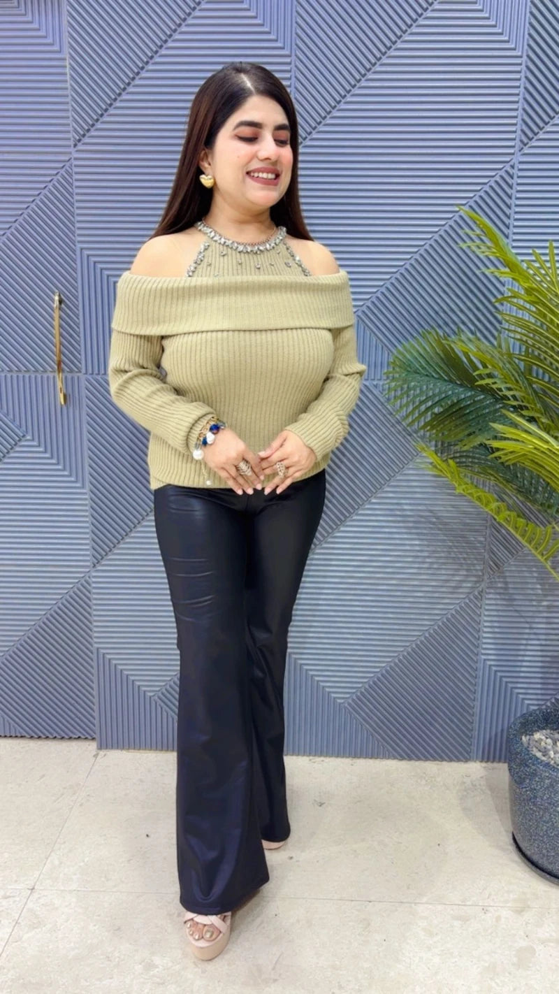 This BEAUTIFUL WINTERWEAR WOOLEN TOP WITH STUDED WORK (LENGTH: 24) Approx is perfect for the season . The TOP beautifully to create a versatile and stylish outfit. your WINTER wardrobe with this luxurious addition, adding a touch of sparkle and charm to any occasion. ( DELIVERY DAYS WITHIN: 10-12 DAYS)