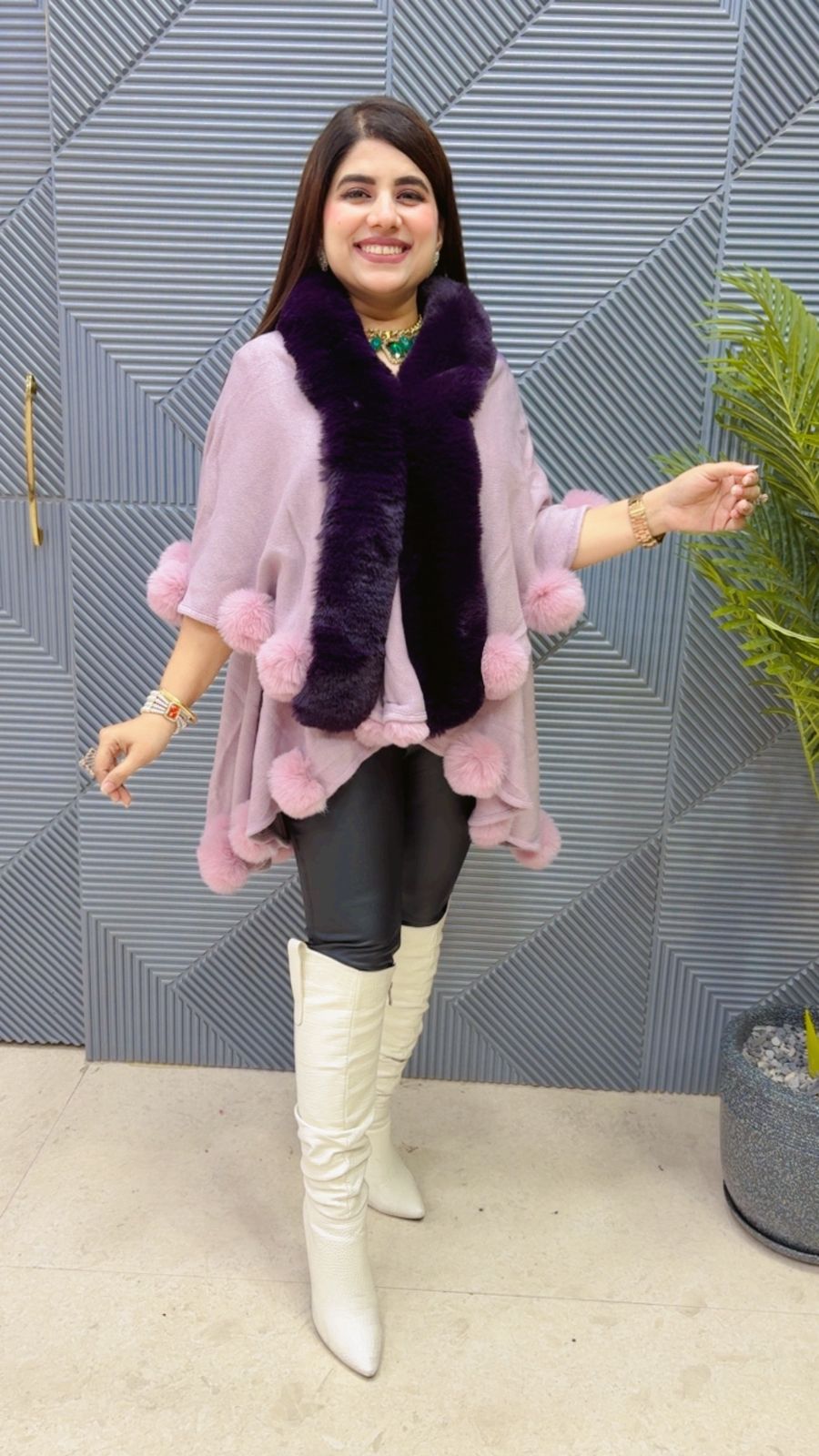 This BEAUTIFUL WINTERWEAR WOOLEN OMBRAY SHADE VIRAL LATTU SHRUG PINCHU WITH HEAVY FURR AND BEAUTIFUL HANGING FURR BALLS (LENGTH: FREE SIZE) Approx is perfect for the season . The SHRUG beautifully to create a versatile and stylish outfit. your WINTER wardrobe with this luxurious addition, adding a touch of sparkle and charm to any occasion. ( DELIVERY DAYS WITHIN: 12-15 DAYS)