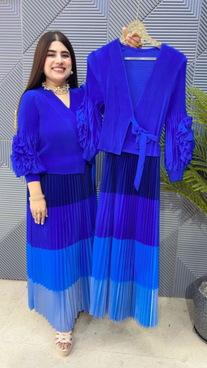 This BEAUTIFUL WRINKLE DRESS WITH BEAUTIFUL FLOWER SLEEVS (LENGTH: 50-51) Approx is perfect for the season . The DRESS beautifully to create a versatile and stylish outfit. your wardrobe with this luxurious addition, adding a touch of sparkle and charm to any occasion. ( DELIVERY DAYS WITHIN: 10-12 DAYS)